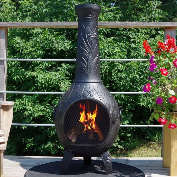 The Orchid Chiminea is the Blue Rooster’s next evolution in providing unique and functional outdoor fireplace designs. The Orchid detail flows over to the rain lid. Cast Aluminum construction requires very little maintenance and will last for years of use. Proper drafting design allows for easy lighting and little or no smoke when dry hardwoods are burned.